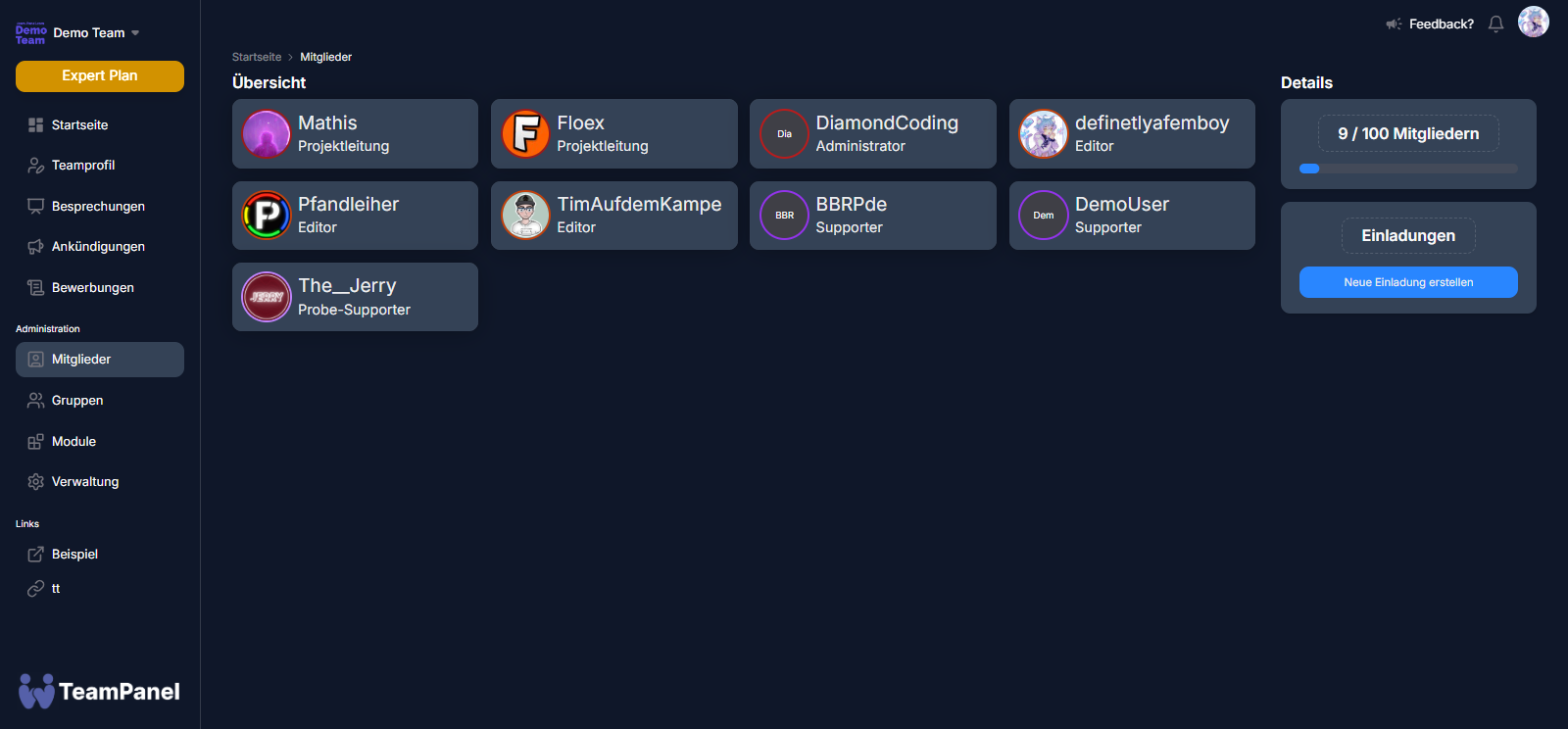 On the Members tab, you can see the members of your team and manage them if you have the necessary permissions. For example, you can add, remove permissions and groups for a team member. You can also give members penalty points, and much more.
