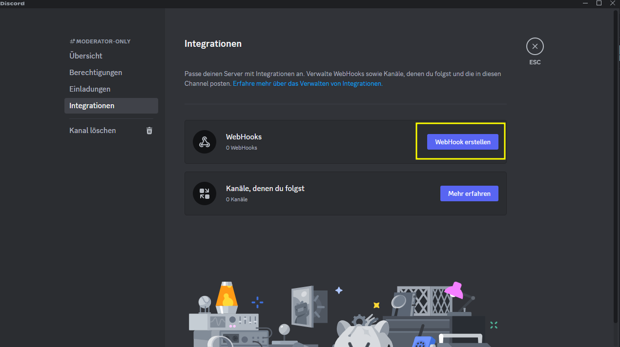 How to create a webhook in your Discord text channel is shown in the screenshots below, otherwise here is a text guide: