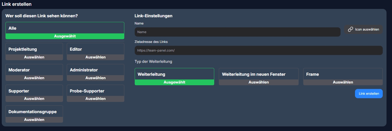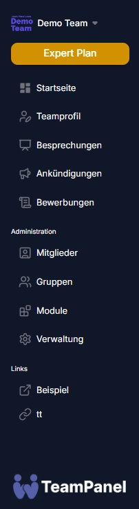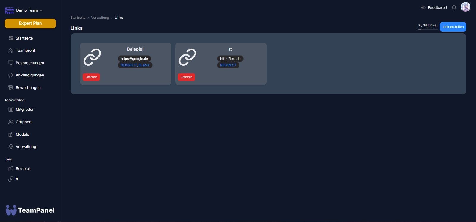 Links give you and your team the option to link to external websites, e.g. to control panels or other things. Links are displayed in the sidebar.