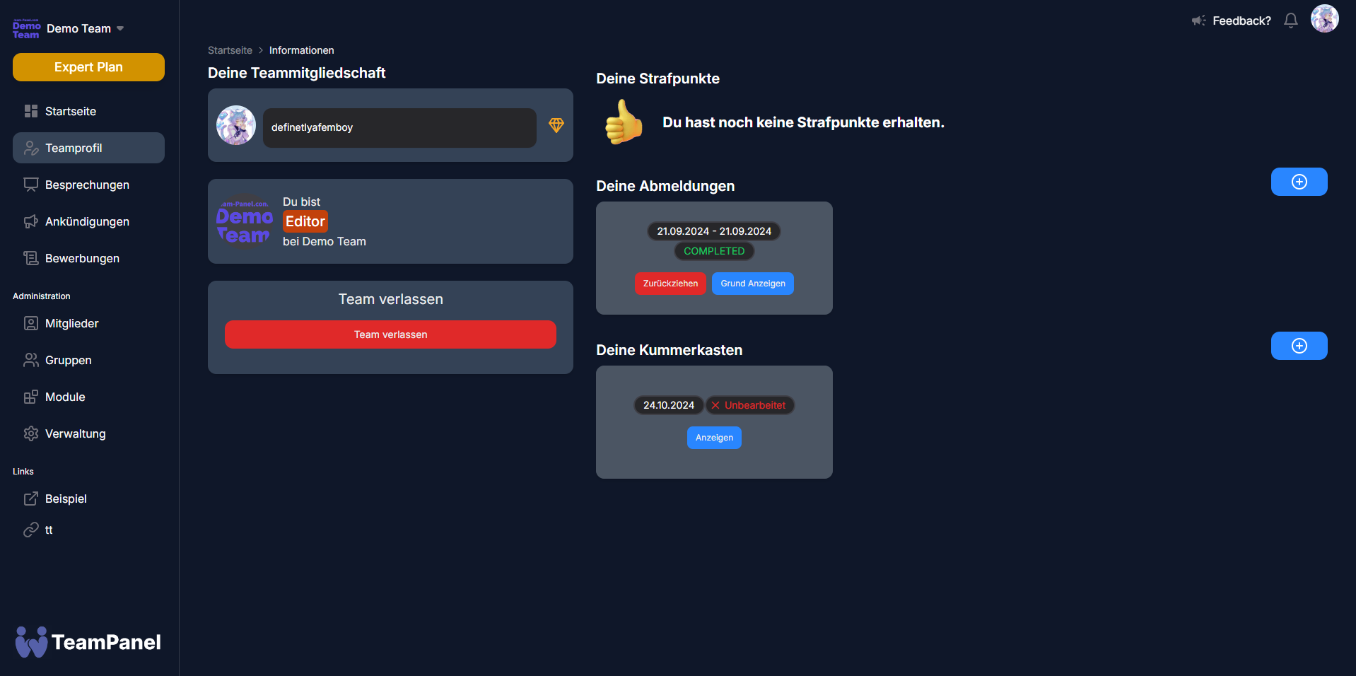 You can view your logoffs under ‘Team profile > Your logoffs’.